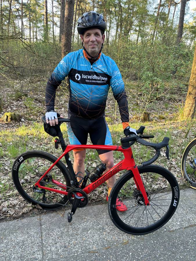 Woensdag 6 maart 2024 is het droog zonnig weer. Vandaag dus een rondje op de racefiets. Hans rijdt voor het eerst op z'n nieuwe fiets.
