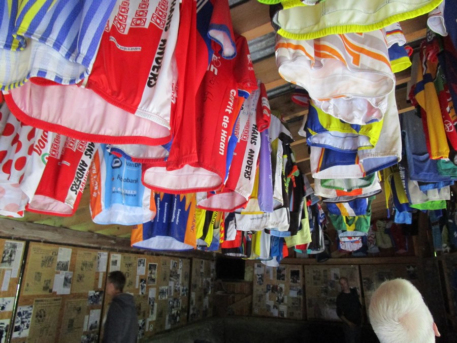 Bij het hotel is ook een 'fiets museumpje' met allemaal wielershirtjes en krantenartikelen van wielerhelden van vroeger en nu.
