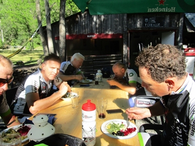 Het fietshotel heeft dagelijks een 'pasta buffet' van 16.00 uur tot 18.00 uur : keuze uit verschillende warme pasta's en groenten. Hier is iedere dag dankbaar gebruik van gemaakt zodat de calorieën iedere avond weer zijn aangevuld.