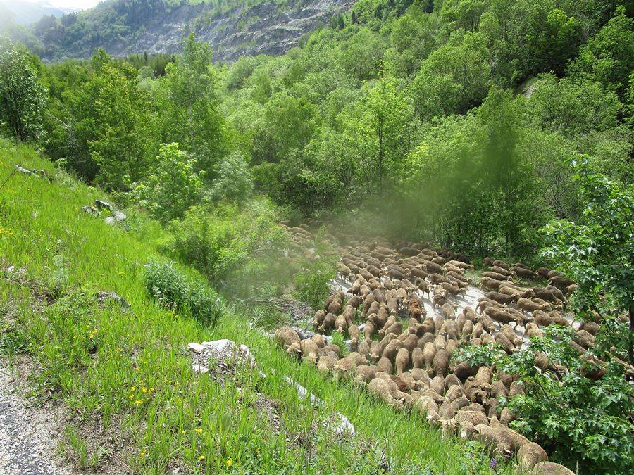 Vanaf Bourg d'Oisans rijden we door het dal naar Allemond. Net na het stuwmeer Lac du Verney, begint de col Croix de Fer: een niet al te moeilijke, maar wel lange klim. Vaak zijn hier schapen te vinden, zo ook nu weer.