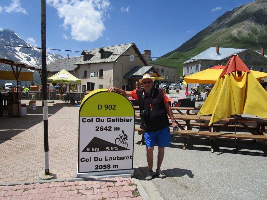Op de top van de Lauteret begint de klim naar de Galibier. Omdat Leon weer is uitgerust, pakt hij de fiets uit de auto om dit laatste stukje nog te fietsen.
