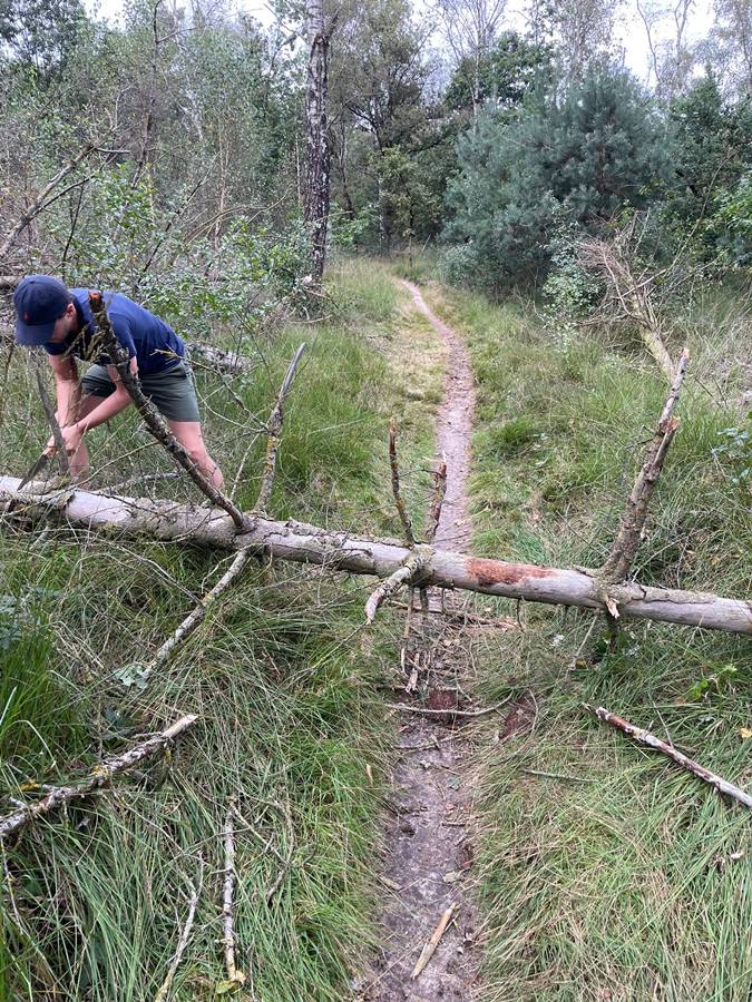 Door de harde wind van dinsdag (19 sept. 2023) is er een boom omgevallen; midden op de ATB route 😒.